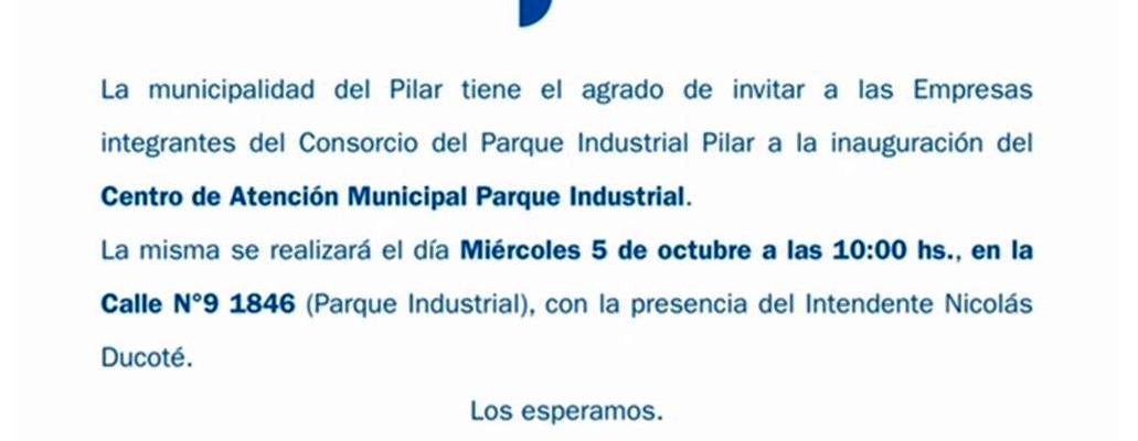 Hoy se realiza la apertura del Primer Centro de Atención de la Municipalidad del Pilar en las oficinas de la Administración del Parque Industrial Pilar que agilizará y facilitará a las Empresas gestionar los trámites de diferentes dependencias municipales.